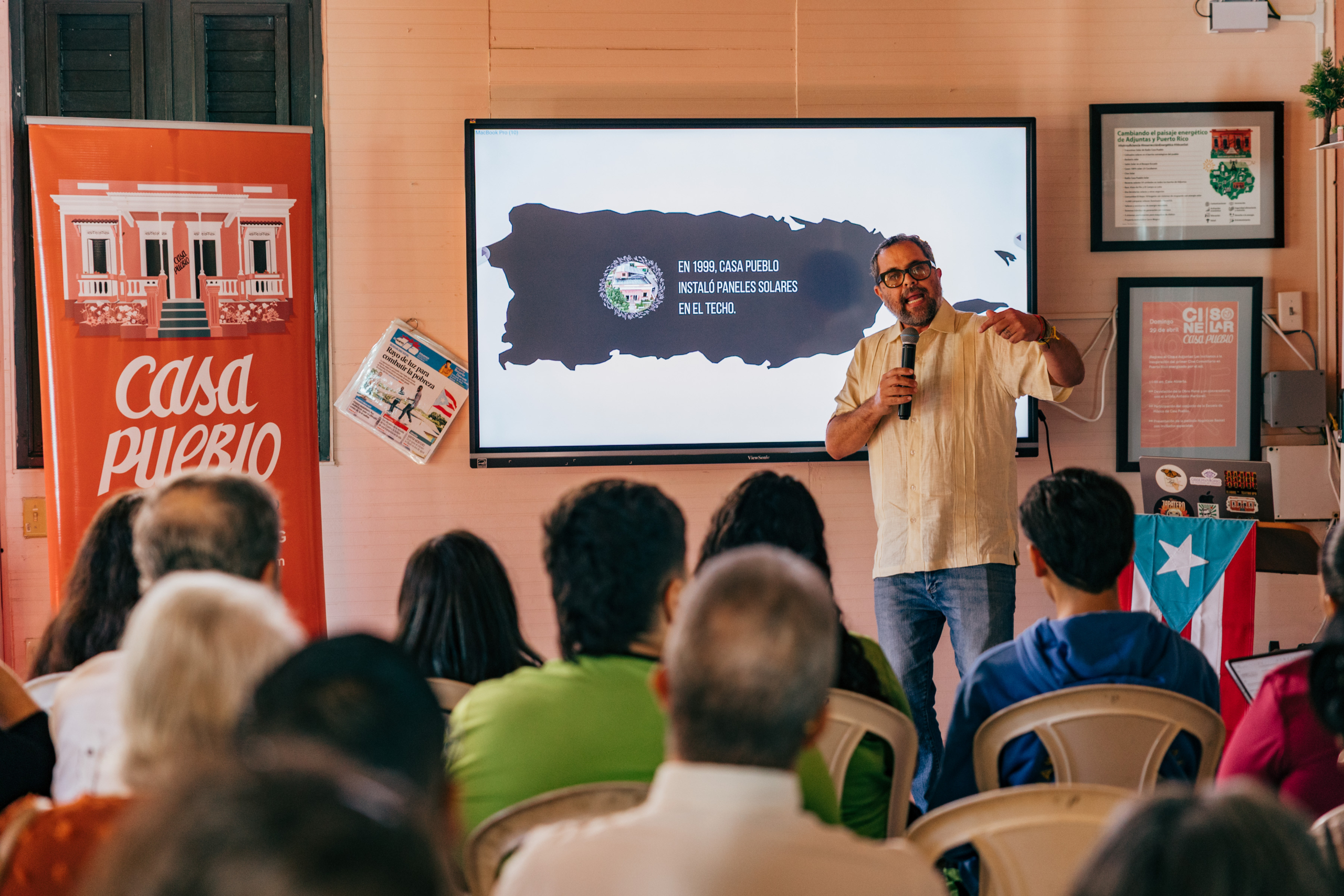 Last month, Casa Pueblo demonstrated how their interconnected solar microgrids can transform Puerto Rico’s landscape. In front of special guests and community members, electrical engineer and researcher Maximiliano Ferrari gave a live demonstration of the orchestrator, an innovative technology that breaks with the current model of unidirectional transmission and allows multidirectional dynamics of energy exchange between communities. This demonstration proved that microgrids can support each other in times of emergency or massive blackouts to ensure that community energy needs are met.